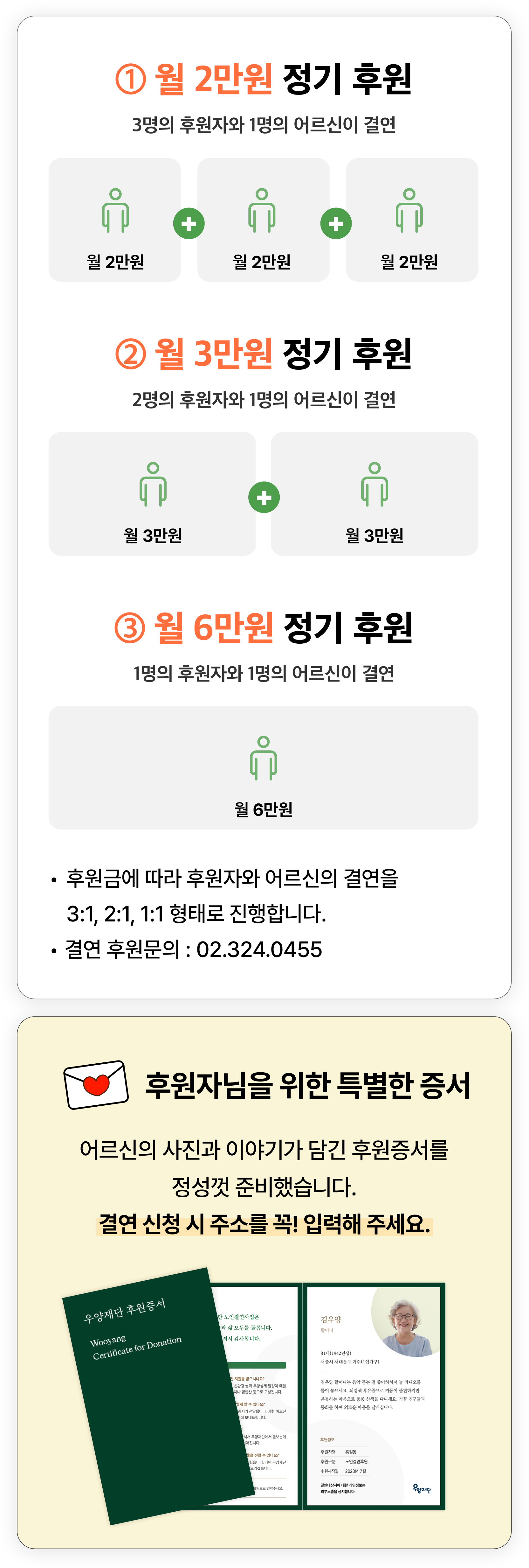 결연이 시작되는 첫 달에 어르신의 정보를 담은 후원증서가 전달됩니다.