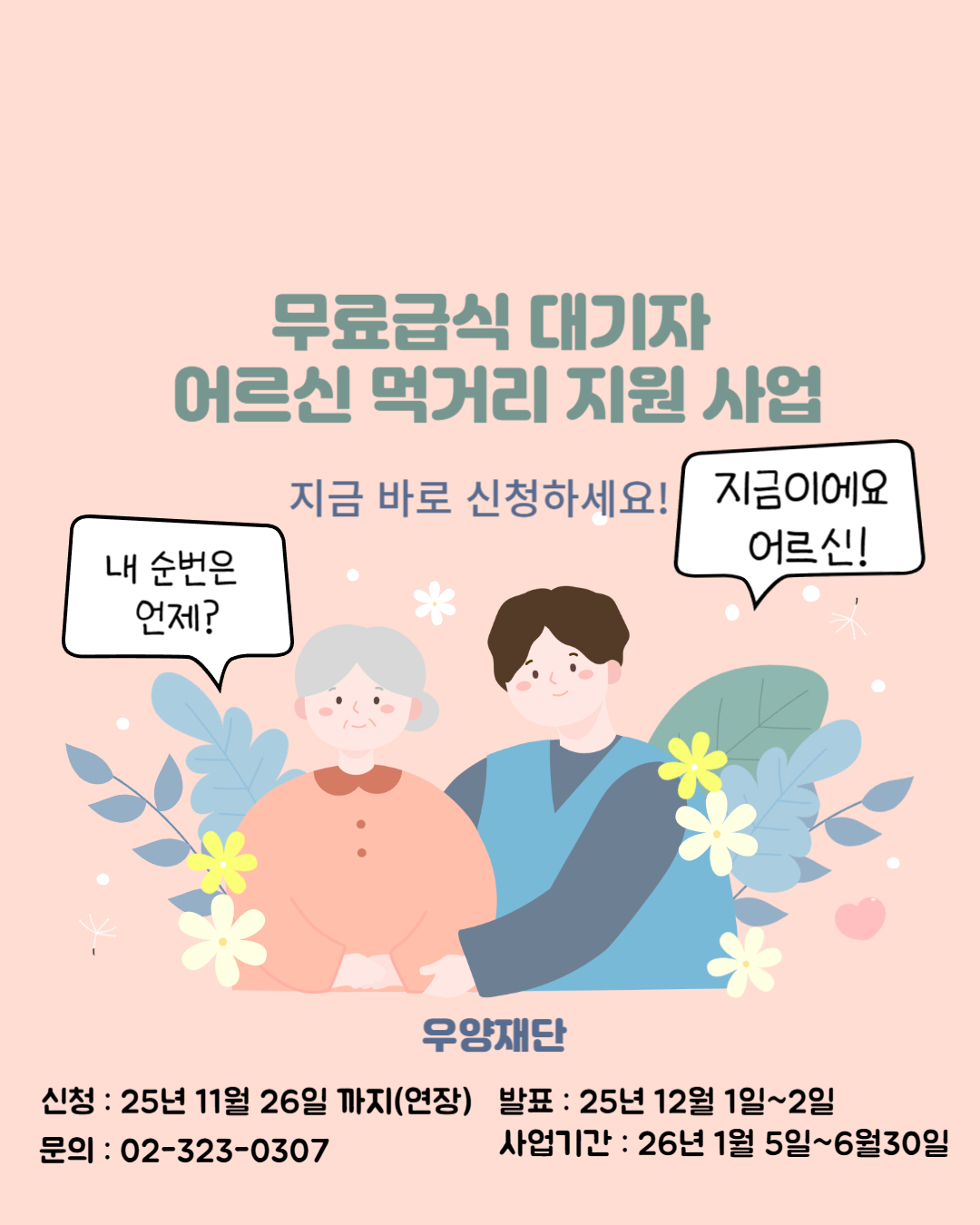 이에 우양재단은 이러한 무료급식 대기자 어르신들을 위한 먹거리 지원 사업을 2026년에도 이어가고자 합니다.