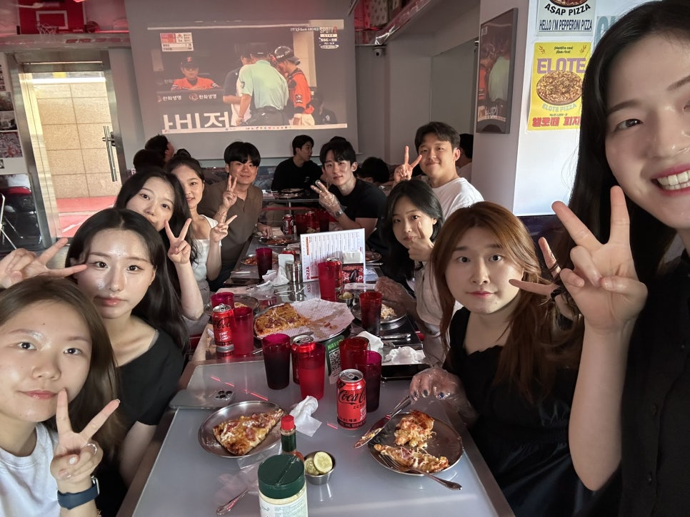 쿠키 만들기가 끝난 뒤, 클래스 사장님도 인정한 인근의 피자 맛집으로 자리를 옮겼습니다. 식사 자리는 언제나 분위기를 푸는 가장 좋은 무대인 것 같습니다. 전공 이야기, 학교생활, 소소한 일상까지 다양한 이야기가 오갔고, 웃음소리도 점점 커졌습니다.