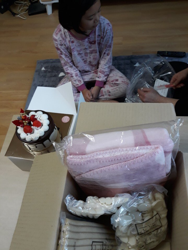 강화도 현미와 백미로 만든 떡과 그리고 케잌, 아이들이 좋아할 만한 담요